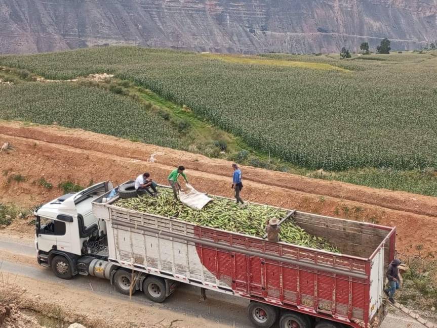 La temporada de cosecha se choclo, inició en el distrito de Uco y a diario entre 3 a 5 vehículos de carga transportan entre 25 a 30 toneladas de choclo por viaje.
