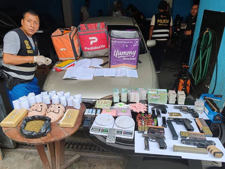 Durante la intervención, se logró la incautación de cuatro pistolas abastecidas y un revólver, así como 3 cacerinas adicionales, más de 500 municiones de diferentes calibres. Además, se decomisaron dos paquetes rectangulares envueltos en cinta de embalaje, que contenían una sustancia compatible con clorhidrato de cocaína, así como 16 paquetes cilíndricos de papel blanco que contenían cigarrillos de marihuana, y 21 frascos de vidrio que parecían contener cocaína líquida, entre otros estupefacientes.