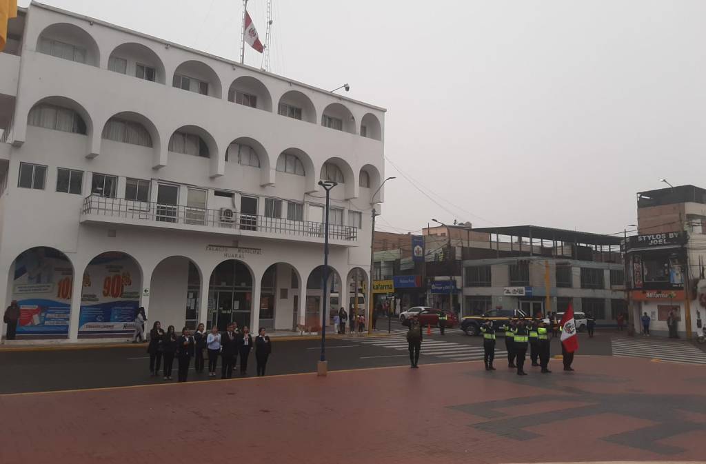 Como cada domingo se realizó en la Plaza de Armas de Huaral, el Izamiento del Pabellón Nacional y Bandera de Huaral, con la presencia de la Subgerencia de Servicio Social a cargo de la Lic. Candy Baca Ríos y de la Subgerencia de Salud y Sanidad a cargo de la Ing. Nubia Urbizagastegui Cano.