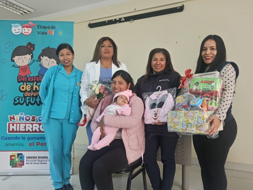 La ganadora, acompañada de su bebe de un mes y medio, proveniente del C.P. Jecuán, recibió una canasta llena de productos para el cuidado del bebe, como pañales, juegos didácticos y ropa, que fue entregada por la coordinadora de Nutri Huaral, Lic. Carolina Castillo Toledo; acompañada de los representantes del sector salud.
