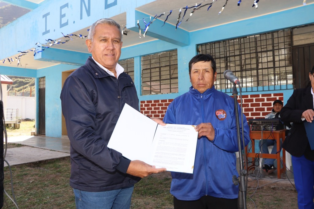 Durante la ceremonia, la directora de la I.E.Pub. N° 20420, Lic. Carmen Trujillo Robles, expresó su agradecimiento por la visita de la autoridad provincial, destacando la importancia de contar con el apoyo del Estado para el desarrollo de las instituciones educativas. «Nos sentimos felices de tener en nuestra casa al alcalde provincial, y reiteramos la necesidad de apoyo constante para seguir mejorando», manifestó Trujillo Robles en su intervención.