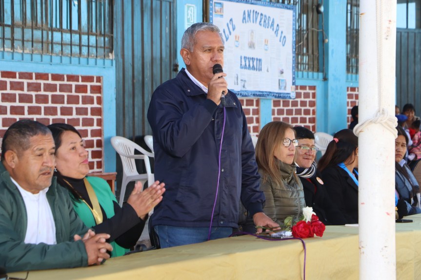 Durante la ceremonia, la directora de la I.E.Pub. N° 20420, Lic. Carmen Trujillo Robles, expresó su agradecimiento por la visita de la autoridad provincial, destacando la importancia de contar con el apoyo del Estado para el desarrollo de las instituciones educativas. «Nos sentimos felices de tener en nuestra casa al alcalde provincial, y reiteramos la necesidad de apoyo constante para seguir mejorando», manifestó Trujillo Robles en su intervención.