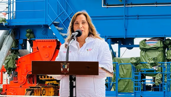 El video es presentado por Sabrina Chiroque, licenciada en Comunicaciones por la Universidad de Lima, quien primero indicó que la presidenta Boluarte supervisó las obras en del Megapuerto de Chancay.