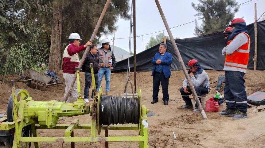 El alcalde, acompañado del Gerente Municipal y el gerente de Desarrollo Territorial e Infraestructura, realizó una visita de trabajo en los tres frentes de la obra como son el pozo tubular, lugar donde funcionará la caseta de bombeo, el reservorio, cuya construcción será de concreto armado y tendrá una capacidad 40 metros cúbicos. Finalmente visitó el tercer frente donde se viene realizando el movimiento de tierra y excavación para la instalación de redes de distribución con tubería PVC de tres pulgadas.