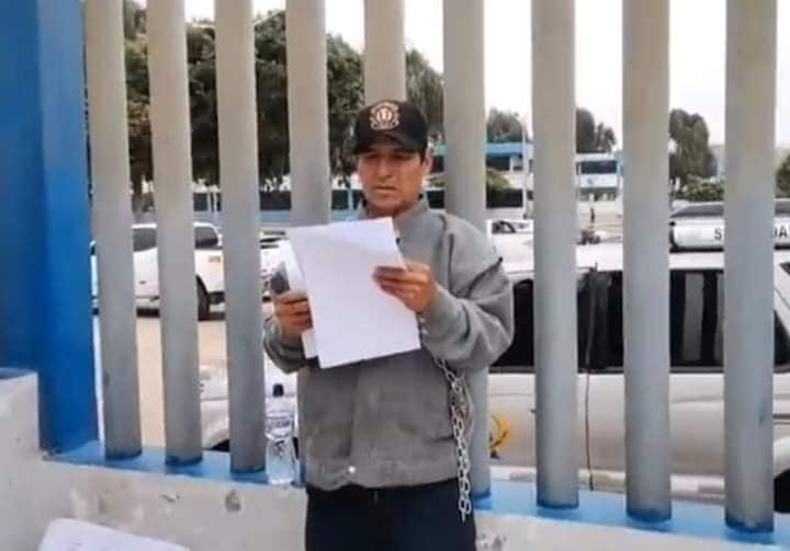 El ciudadano de Humaya Luis Poma se encadenó en los exteriores de la universidad José F. Sánchez Carrión de Huacho, como medida de protesta por el resultado irregular del examen de su menor hijo quien postuló a la especialidad de Derecho y Ciencias Políticas y obtuvo 00 puntos, cuando en otros exámenes de admisión sacaba puntajes altos.