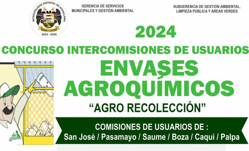 Con la finalidad de seguir luchando contra la contaminación de nuestros canales de riego a causa de los envases vacíos de agroquímicos, la municipalidad distrital de Aucallama realiza el lanzamiento del Primer Concurso Intercomisiones de Usuarios 2024.