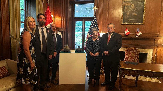 El embajador Ferrero resaltó este gesto que fortalece la relación bilateral y reafirma el compromiso del Perú de continuar fortaleciendo el trabajo con Estados Unidos para enfrentar el tráfico ilegal de patrimonio cultural.