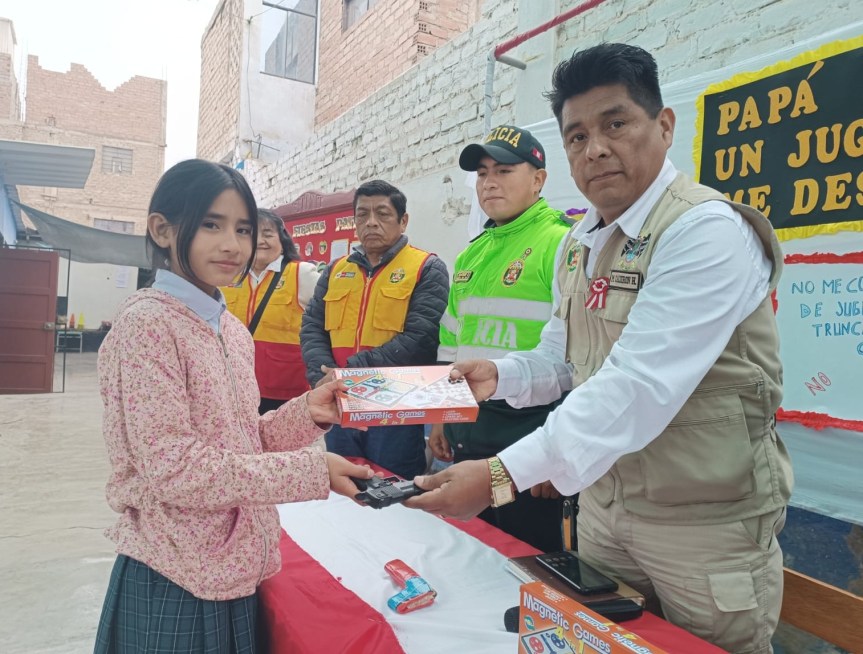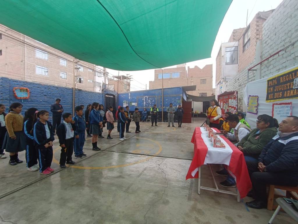 La actividad consistió en el intercambio de armas de juguetes que tienen los estudiantes, por un juego recreativo que les permita desarrollar sus capacidades de manera didáctica, promoviendo así las buenas prácticas en su entorno social. Esta campaña se viene realizando de manera programada en las diferentes instituciones educativas del distrito de Huaral.