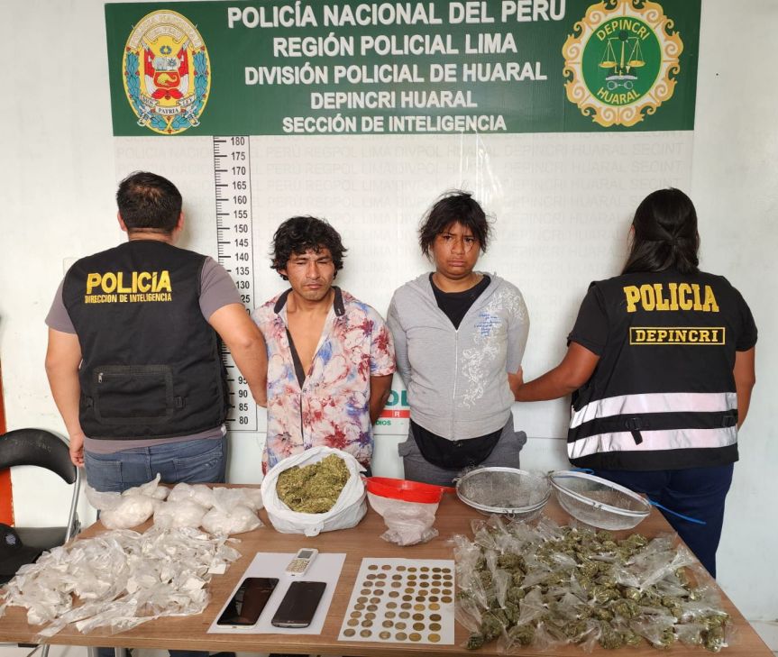Asimismo, el jefe de la Divpol informó que en la intervención se logró decomisar aproximadamente 3 kilos de marihuana, pasta básica de cocaína y 27 envoltorios de papel manteca conteniendo en su interior clorhidrato de cocaína, 03 coladores, 03 celulares y dinero de diferentes denominaciones con un valor de S/. 18.70, por tal motivo fueron detenidos y trasladados al DEPINCRI Huaral.