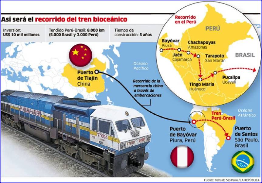 El Tren Bioceánico, es una innovadora vía ferroviaria en desarrollo que conectará Brasil y Bolivia con el Puerto de Chancay en Perú, creando un puente logístico clave entre el Atlántico y el Pacífico.