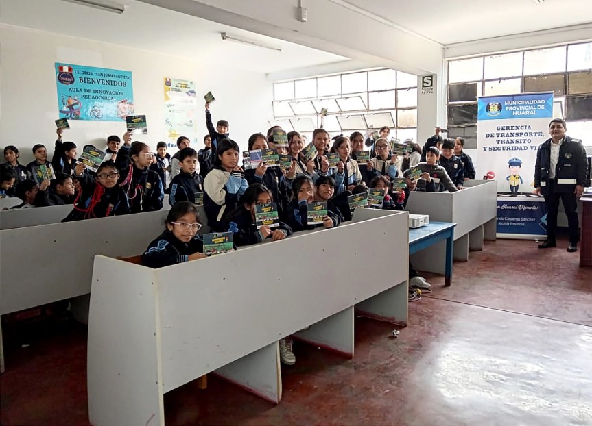 La Gerencia de Transporte, Tránsito y Seguridad Vial de la Municipalidad Provincial de Huaral, llegó a la I.E. N° 20826 «SAN JUAN BAUTISTA», a fin de poder brindar la charla en educación vial denominada «Caminando Seguro», la cual tiene como fundamento inculcar en los estudiantes el respeto por las normas y señales de tránsito, además de fomentar el uso de medidas de protección como es el uso responsable del casco y del cinturón de seguridad.