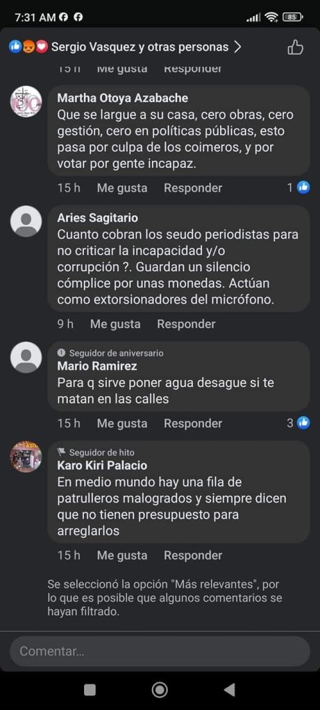 Asimismo, huachanos también aprovecharon en otras plataformas para cuestionar a la gobernante el poco interés por la inseguridad que vivimos, y lo poco o nada que está haciendo. «Huacho se desangra».