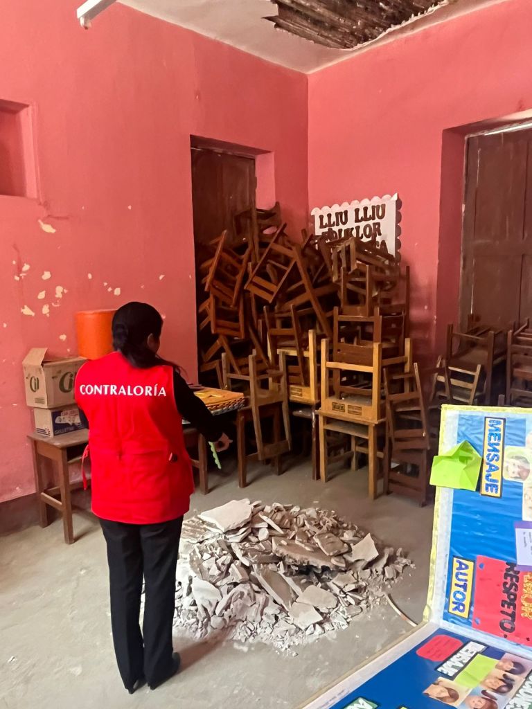 La Contraloría evidenció que los estudiantes de nivel inicial y primaria de la I.E. N° 30020 en Pucará, Junín, reciben clases en el patio escolar expuestos a la intemperie. Las aulas presentan techos y paredes con grietas profundas, rajaduras extensas y filtraciones de agua, situación que hace imposible su uso y pone en grave riesgo la integridad física de 217 alumnos y sus maestros.
