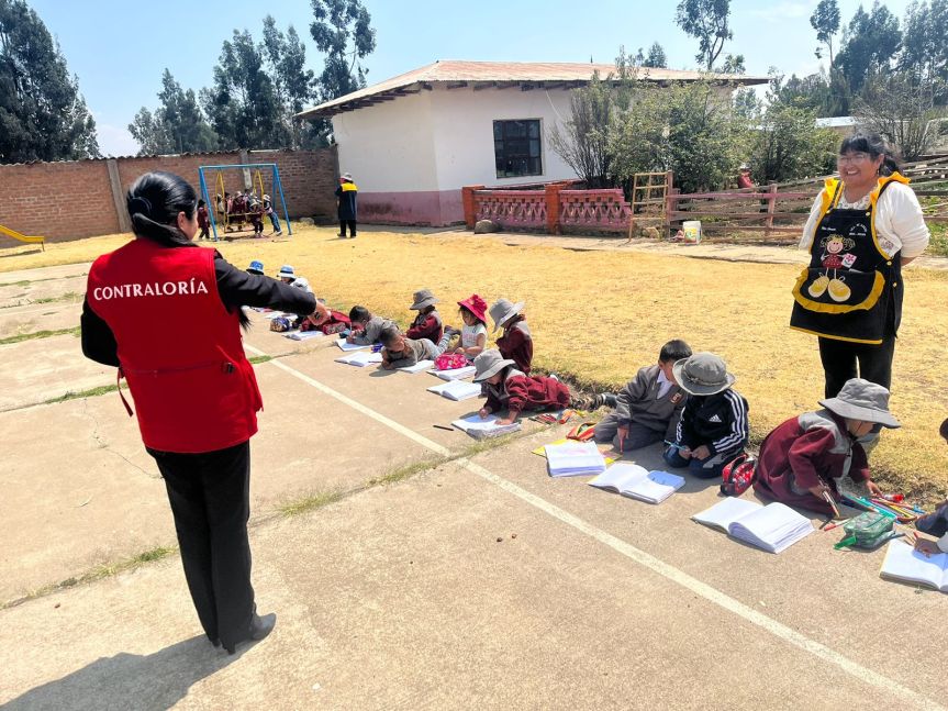 La Contraloría evidenció que los estudiantes de nivel inicial y primaria de la I.E. N° 30020 en Pucará, Junín, reciben clases en el patio escolar expuestos a la intemperie. Las aulas presentan techos y paredes con grietas profundas, rajaduras extensas y filtraciones de agua, situación que hace imposible su uso y pone en grave riesgo la integridad física de 217 alumnos y sus maestros.