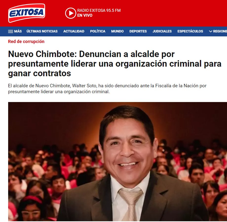 Hace unos días, Yldefonzo Espinoza Cano denunció un nuevo aparato de corrupción en Áncash, donde se encontrarían involucrados el alcalde de Nuevo Chimbote, su cónyuge, Zulema Barrenechea Reyes, y una agrupación de ingenieros que participan en diversos concursos públicos.