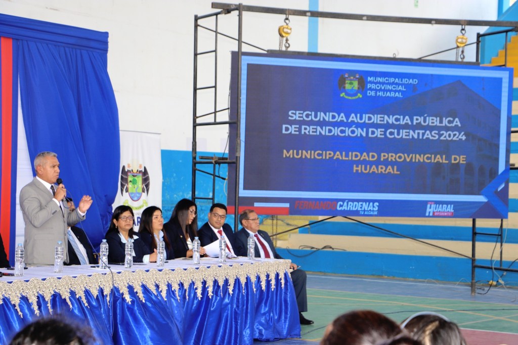 La Municipalidad Provincial de Huaral llevó a cabo la II Audiencia Pública de Rendición de Cuentas 2024, un evento clave para mantener a la ciudadanía huaralina informada sobre la gestión municipal. Este acto se realizó en el Coliseo «Campeones de Huaral» y estuvo presidido por el alcalde Fernando Cárdenas Sánchez, acompañado de los principales funcionarios municipales.