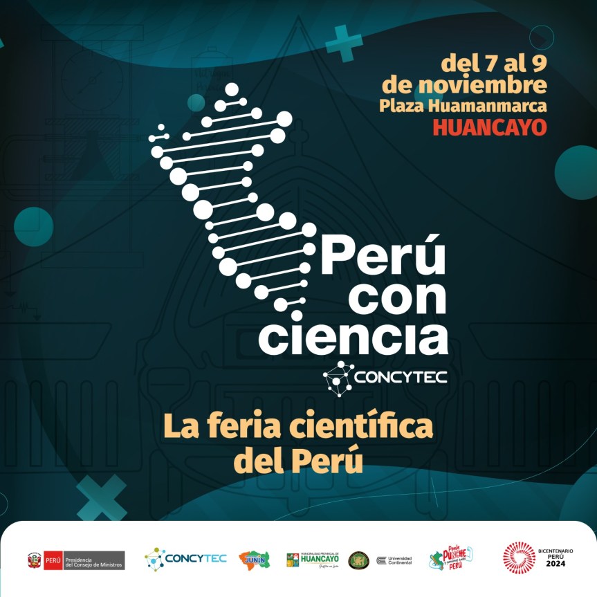 El Consejo Nacional de Ciencia, Tecnología e Innovación (CONCYTEC) anuncia la 12ª edición de “Perú con Ciencia, la feria científica del Perú” y la 34ª edición de la Feria Escolar “Eureka”, que tendrá como sede a la ciudad de Huancayo, presentando los avances y productos de la investigación científica y tecnológica que se desarrolla en nuestro país, así como los proyectos ganadores del Concurso Nacional Escolar de Ciencia y Tecnología “Eureka”.
