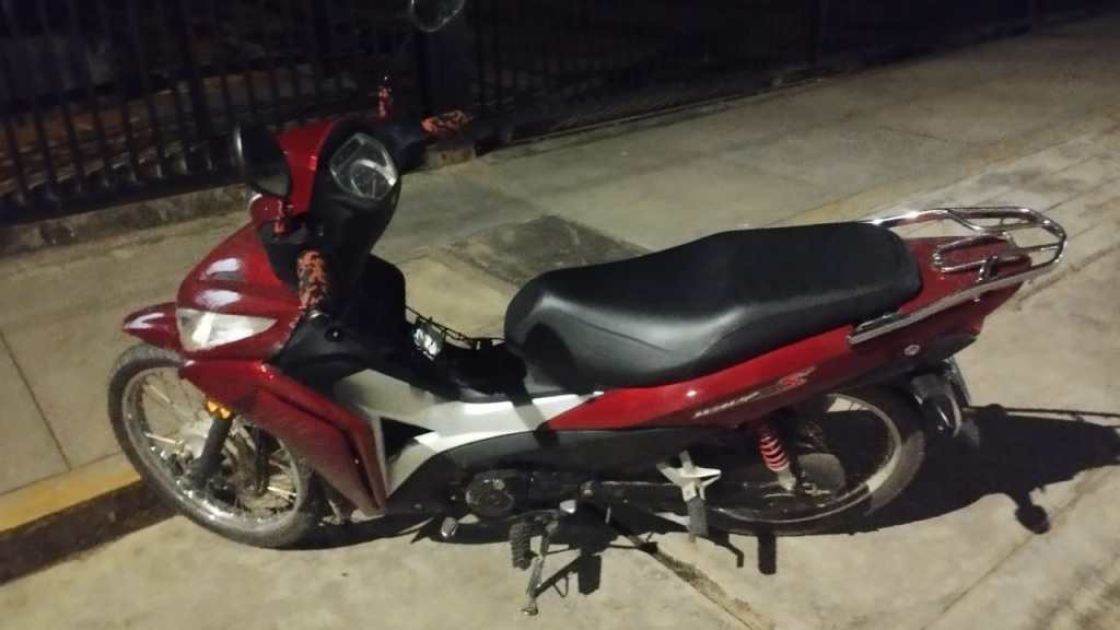 En un rápido accionar, efectivos de Protección de Carreteras Rio Negro, logró la detención de dos personas, entre ellos, un menor de edad, involucrados en el presunto robo de un vehículo de placa de rodaje 7110-DW, marca Honda, color rojo.