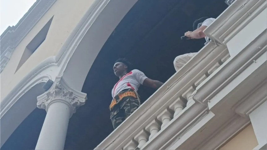 Posteriormente, tras pasar por la oficina del burgomaestre, salió al balcón, en donde se animó a hablar para los cientos de jóvenes que llegaron hasta la Plaza de Armas.