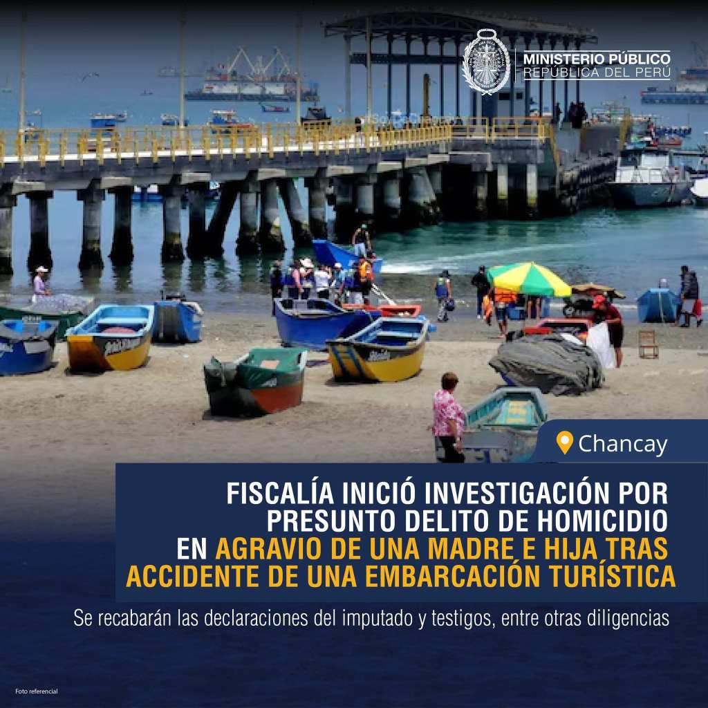La fiscalía provincial penal de Huaura inició investigación preliminar contra Jonathan Lume por el presunto delito de homicidio culposo en agravio de Stefany Araindia y su hija de 7 años de edad, fallecidas en el Puerto de Chancay, cuando regresaban de pasear en la embarcación ‘Aydara’ que conducía el investigado.