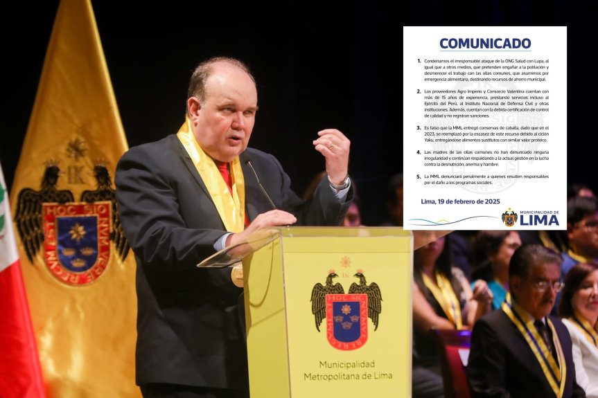 En el comunicado, la municipalidad calificó el reportaje como un «irresponsable ataque de la ONG Salud con Lupa», lo tildó de falso y anunció una denuncia penal contra el portal. López Aliaga añadió en su publicación: “¡BASTA DE DIFAMACIONES..! ¡MERMELEROS CORRUPTOS..! ¡SERÁN DENUNCIADOS PENALMENTE..!”