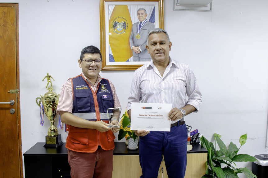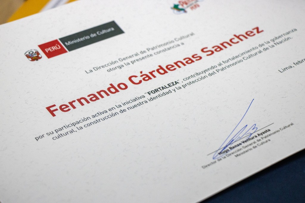 Durante la premiación, el Viceministro de Patrimonio Cultural e Industrias Culturales, Jamer Nelson Chávez Anticona, entregó el reconocimiento al Gerente de Desarrollo Social, Lic. Anthony Vega Coronado, quien asistió en representación del Alcalde Provincial Fernando Cárdenas Sánchez.