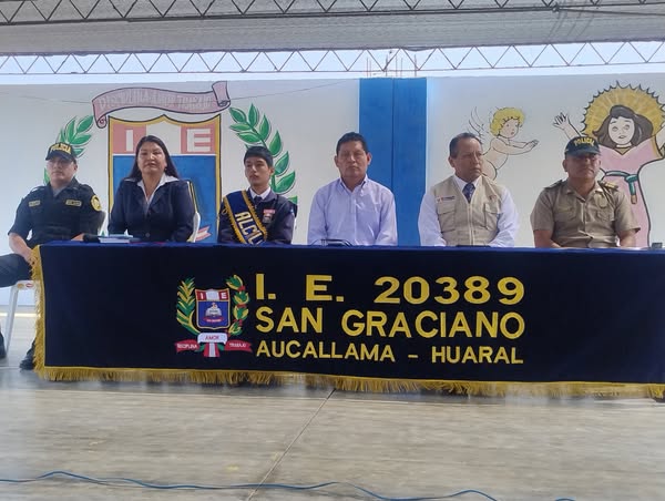 La ceremonia estuvo presidida por la directora del plantel, Mag. Betty Aquino Trejo y contó con la presencia del Subprefecto Distrital, Jorge Alberto Picón, así como de los representantes de la Policía Nacional del Perú, Comisaría de Aucallama.