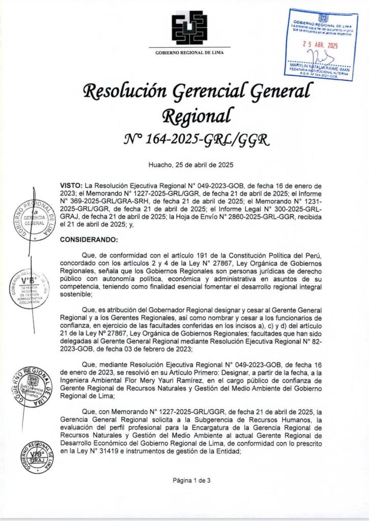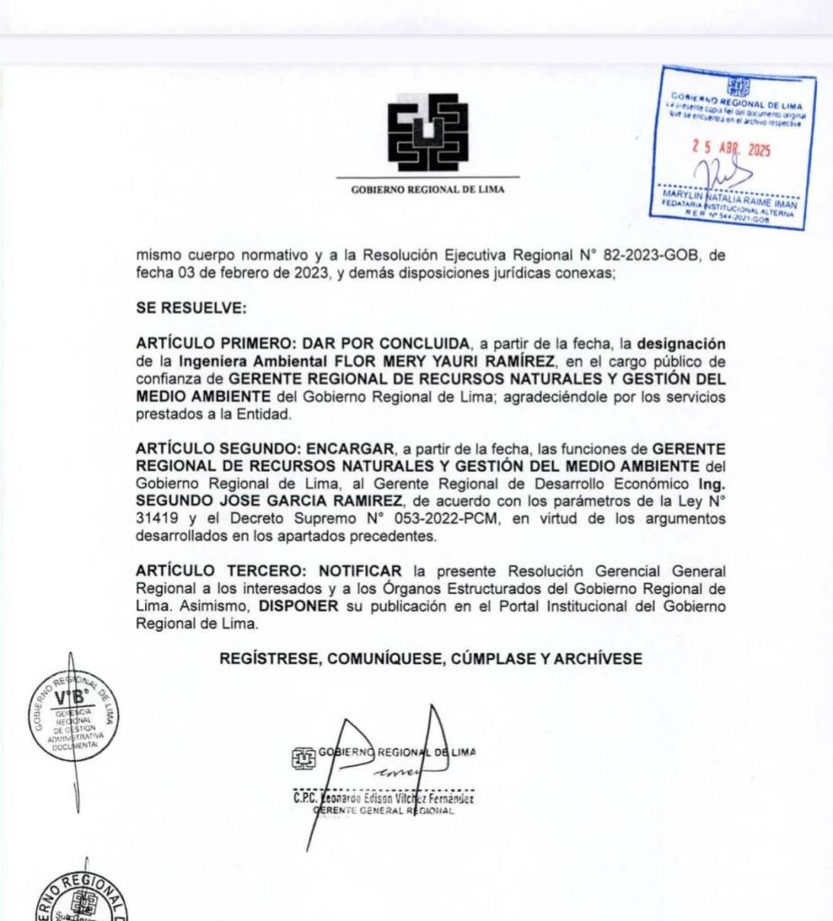 En su red social, la huaralina Flor Yauri anunció su renuncia a la Gerencia de Recursos Naturales y Gestión del Medio Ambiente del Gobierno Regional de Lima, tras estar tres años en gestión con la titular de la región Rosa Vásquez.