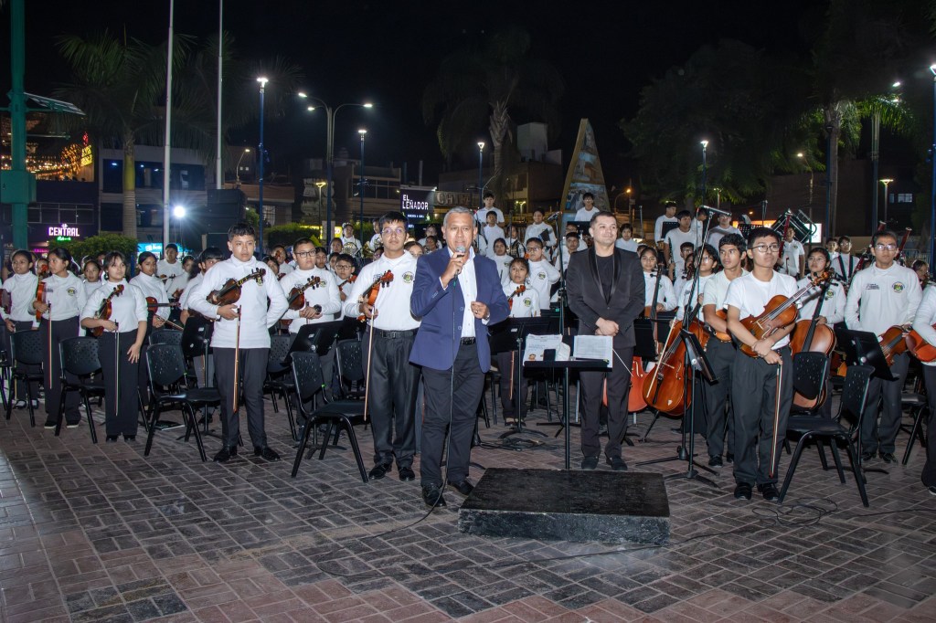 El programa de formación musical, coro y orquesta sinfónico inició en esta gestión municipal en el año 2023, actualmente se ha mejorado los ambientes en Casa de la Juventud donde se dictan los talleres, así mismo se ha adquirido 170 instrumentos musicales, que permiten desarrollar las clases de viento, cuerdas, percusión, coro y canto.