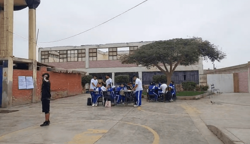 Alumnos del colegio los Naturales estudian al aire libre, tras deterioro de sus aulas y miedo al colapso