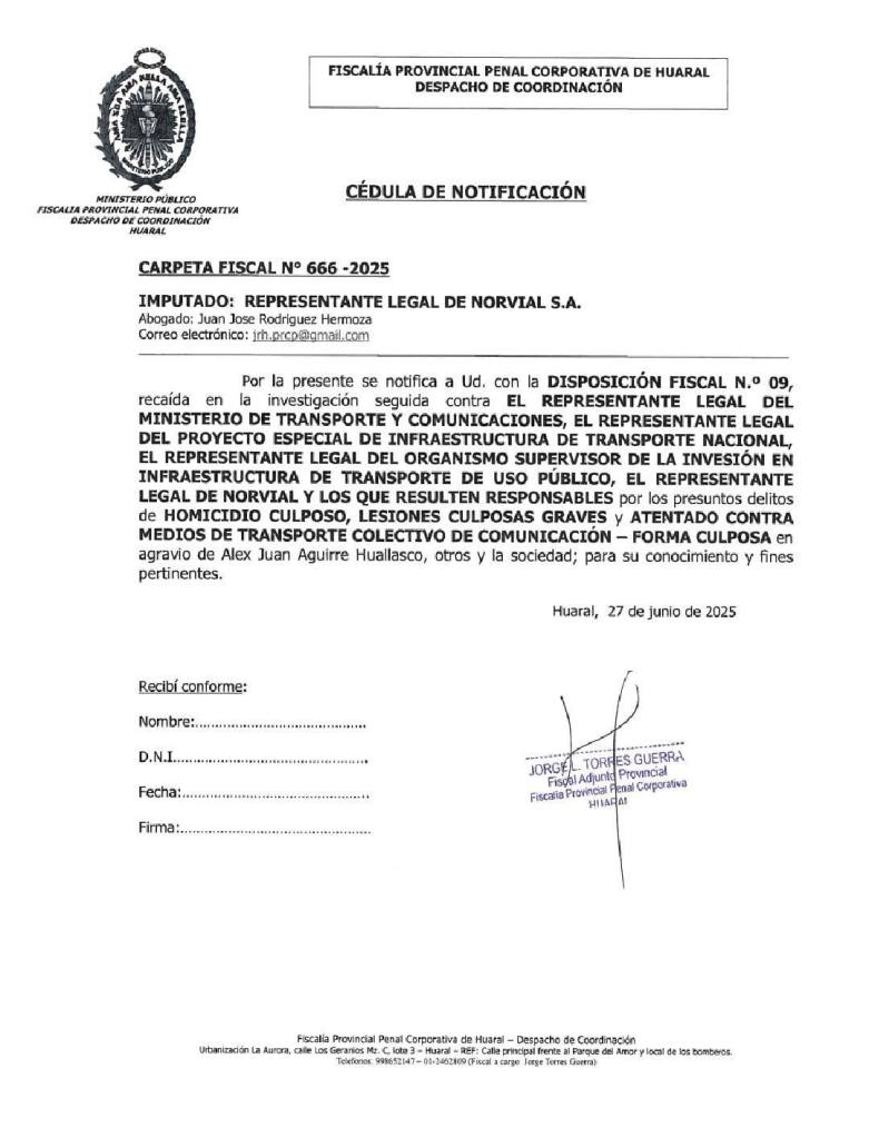 En la disposición N° 09 – 2025, el fiscal Enrique Landa advierte la «necesidad» de la extracción de escombros en la mencionada vía a para la instalación del puente metálico.