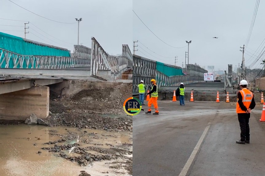 Este puente que es provisional será reemplazado al colapsado puente ya conocido. Actualmente los trabajos tienen un avance de 40%, muy temprano estuvo supervisando la obra el Ministro de Transportes Cesar Sandoval Pozo.