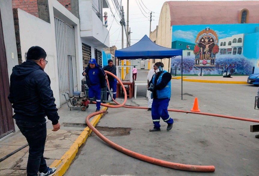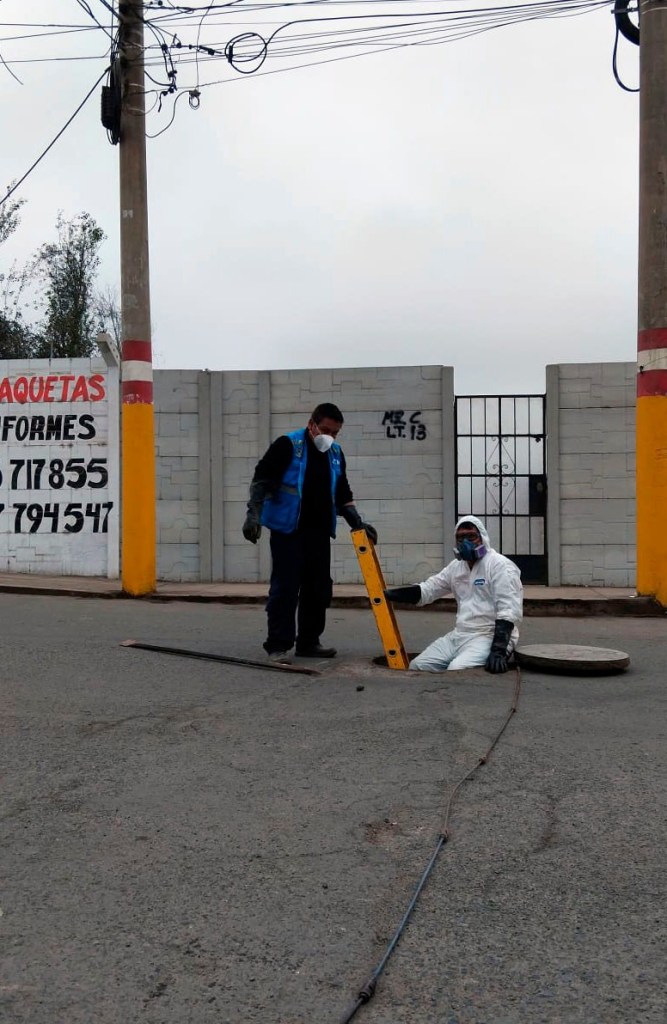 El personal operativo de la Gerencia de Servicios Municipales y Gestión Ambiental continúa realizando labores para identificar y solucionar un atoro en una arteria del sistema de alcantarillado.