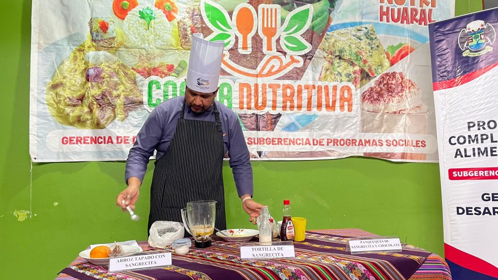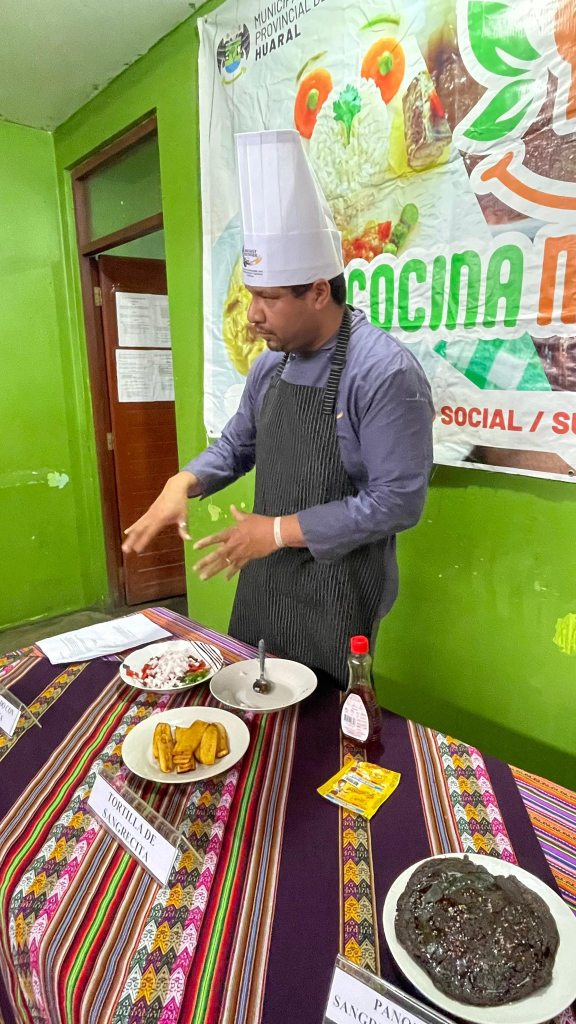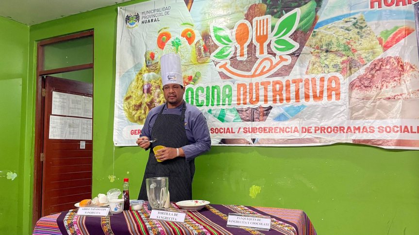La jornada se llevó a cabo en la Olla Común Virgen del Carmen y estuvo dirigida a integrantes de comedores populares y ollas comunes de la zona. La capacitación estuvo a cargo del chef Cristian Zapata, quien compartió sus conocimientos en la preparación de recetas nutritivas, económicas y de fácil elaboración, como panqueques de sangrecita y chocolate, tornilla de sangrecita y arroz tapado con sangrecita.