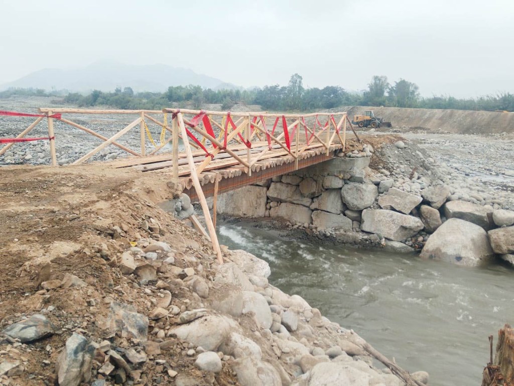 Simultáneamente, con el propósito de no dejar aislada la zona ni afectar la movilidad de las comunidades, ya se ha puesto en servicio un puente provisional modular, el cual garantiza el paso de vehículos mientras duren las obras.