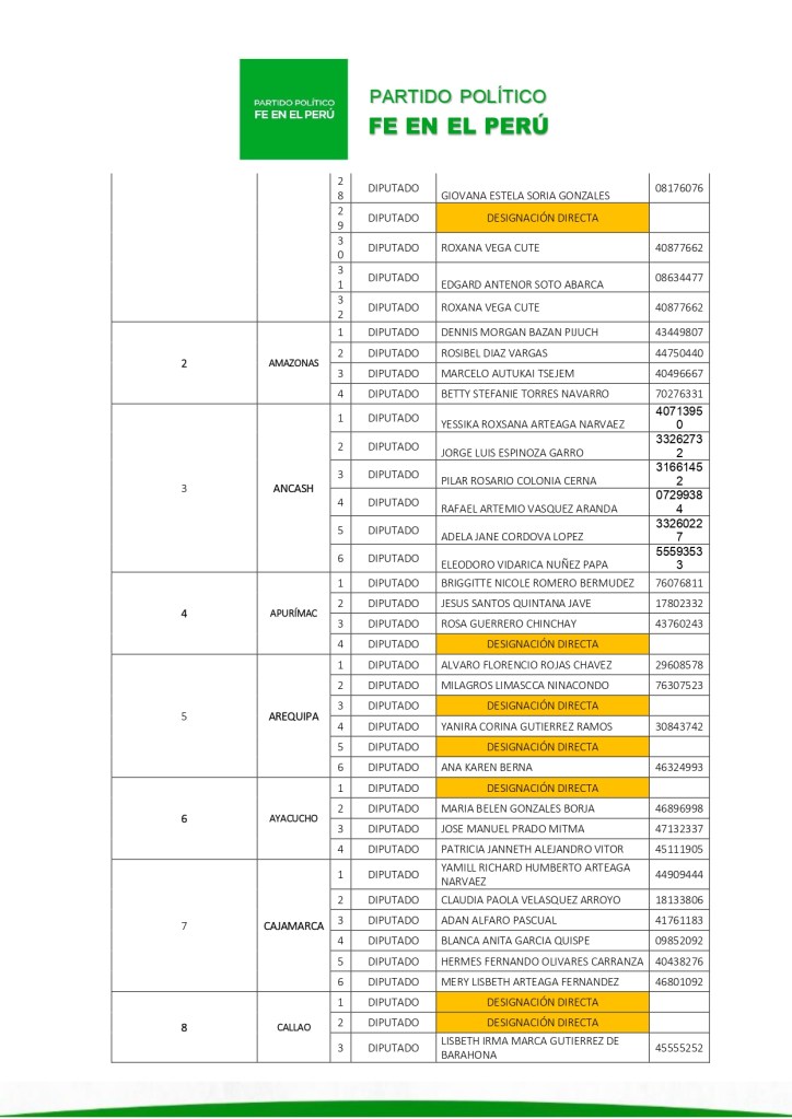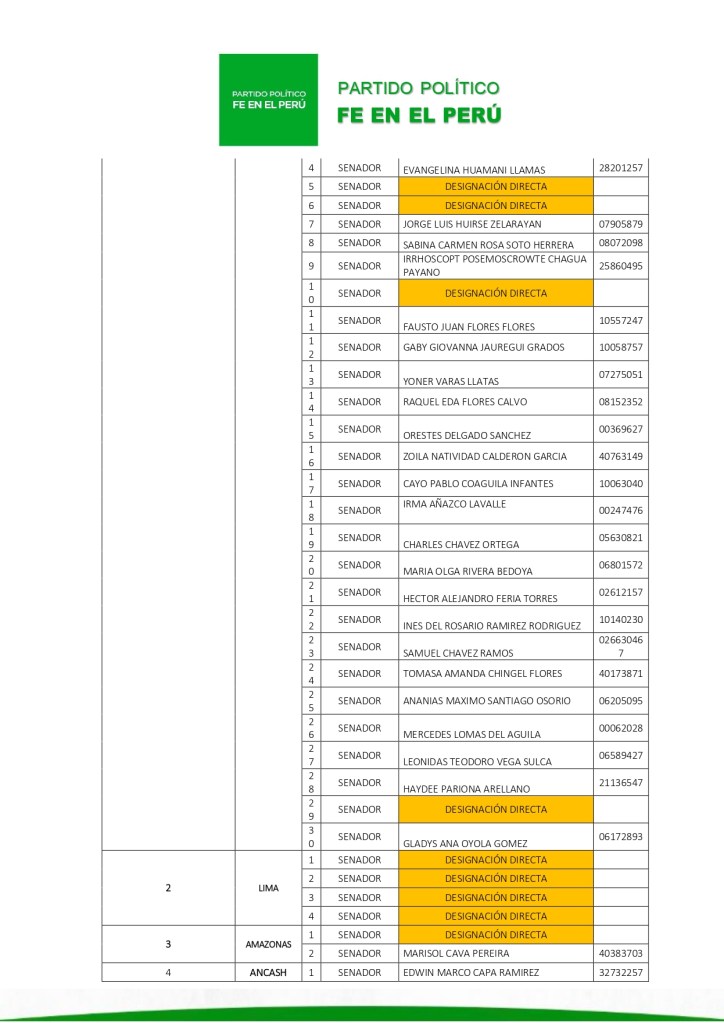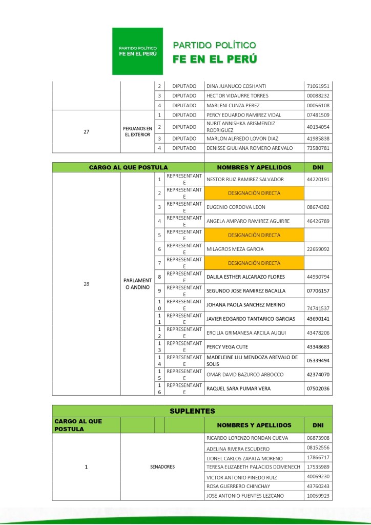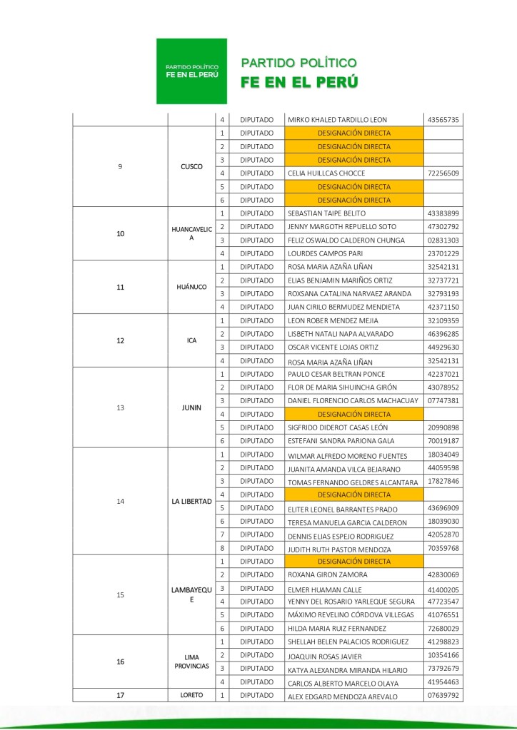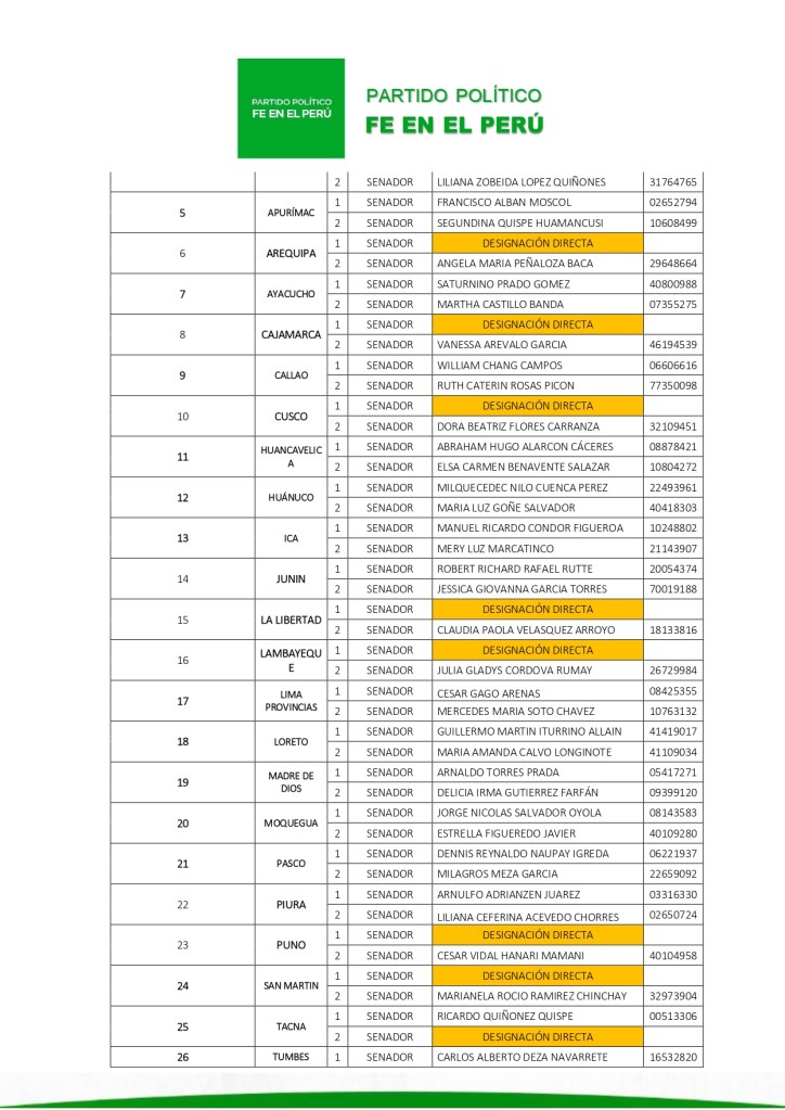 El Tribunal Electoral Nacional del partido político Fe en el Perú ordenó formalizar la inscripción de la lista N.º 01, presentada por el candidato Álvaro Gonzalo Paz de la Barra Freigeiro, con miras a las próximas elecciones generales.