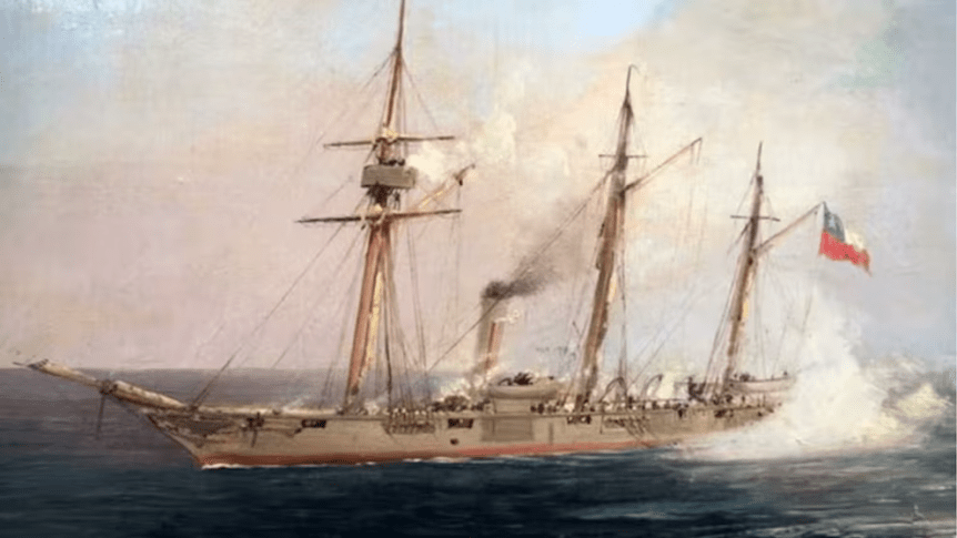 Durante la Guerra del Pacífico, la Goleta Covadonga, símbolo de la armada chilena, fue destruida por un ‘bote bomba’ peruano cerca de las costas de Chancay, tras caer en una emboscada. (Museo Histórico Nacional de Chile)