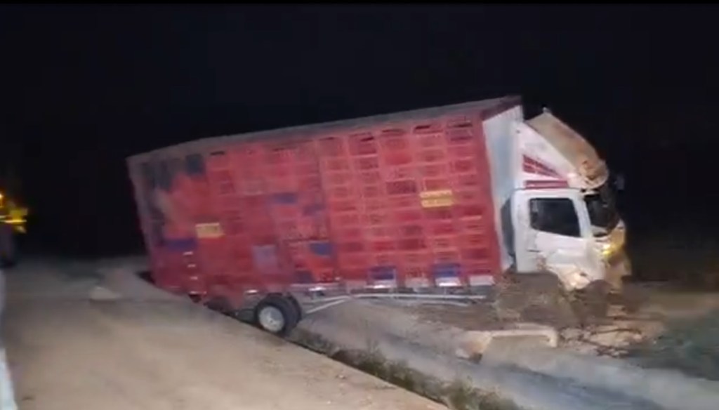 Un camión que transportaba javas de pollo se despistó la noche del domingo y terminó incrustado en un canal de regadío a la altura del kilómetro 5 de la carretera Alberto Fujimori, en Huaral, cerca de la zona de Alvanor.