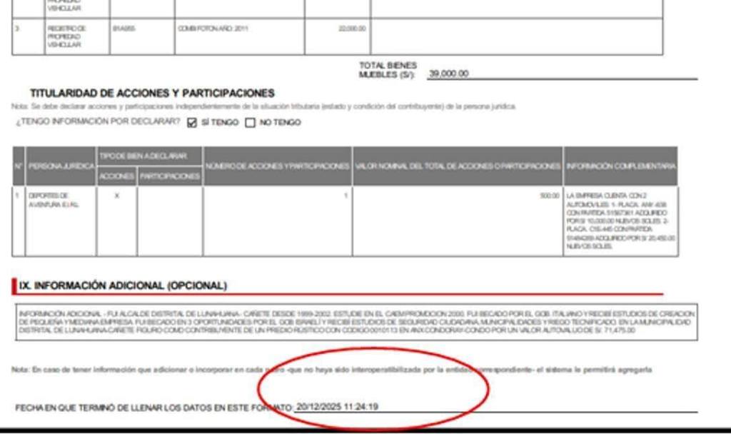 El JEE de Huaura, al revisar la solicitud de inscripción de lista de candidatos al senado presentada por la organización Renovación Popular, advierte que en la fecha de suscripción por parte de la declaración jurada (anexo 11) , no se condice a la fecha de confirmación del registro informativo de la declaración jurada de la hoja de vida del candidato Javier Jesús Alvarado Gonzales del Valle.