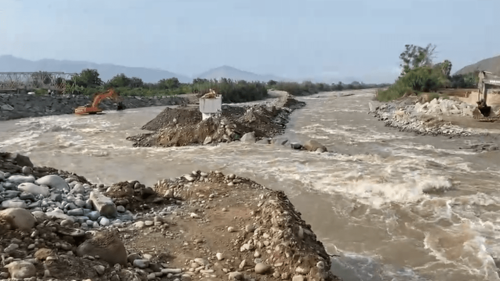 En la zona se observa la presencia de maquinaria pesada realizando trabajos de encauzamiento y habilitación de conductos con el objetivo de evitar un posible desborde del río y reducir los riesgos para la población.