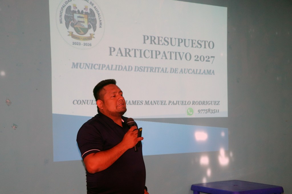 La Municipalidad Distrital de Aucallama realizó, exitosamente, el segundo taller de capacitación de agentes participantes, en el marco del Presupuesto Participativo, Basado en Resultados, correspondiente al Ejercicio Fiscal del año 2027. El taller se realizó en el local del adulto mayor de Pasamayo.