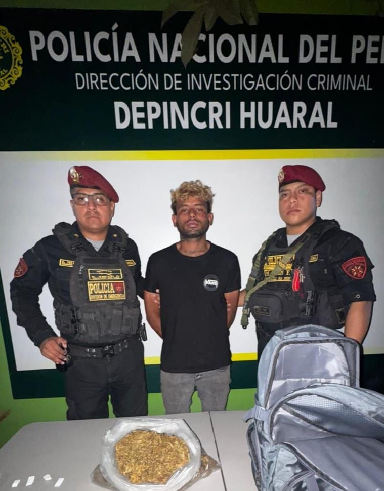 Durante un operativo de patrullaje preventivo, personal de la DEPEME Huaral logró la detención de una persona por el presunto delito de Tráfico Ilícito de Drogas (TID), en una zona considerada de alto índice delictivo.