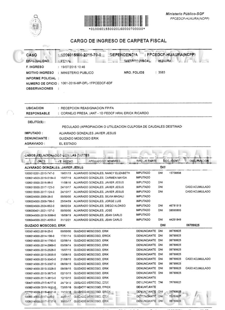 Por primera vez damos a conocer documentos fiscales y de investigación señalan al ex presidente regional de Lima, Javier Alvarado, por la presunta comisión de delitos contra la administración pública como peculado, colusión, negociación incompatible y omisión de deberes funcionales. La denuncia, vinculada al uso de “encargos económicos” durante su gestión municipal y regional, fue derivada al Distrito Fiscal de Huaura, donde se deberá continuar con las diligencias por presuntas irregularidades en el manejo de recursos del Estado.