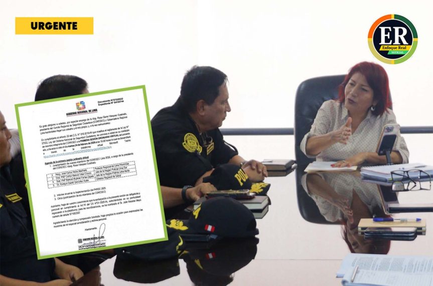 En medio de una creciente ola de inseguridad que golpea sin tregua a la región Lima, el Gobierno Regional de Lima ha convocado a la Primera Sesión Ordinaria 2026 del Comité Regional de Seguridad Ciudadana (CORESEC) para este martes 24 de febrero a las 18:00 horas. Lo que ha generado sorpresa e indignación es que esta importante reunión —donde incluso se realizará la juramentación de nuevos miembros— se desarrollará de manera virtual a través de la plataforma Microsoft Teams.