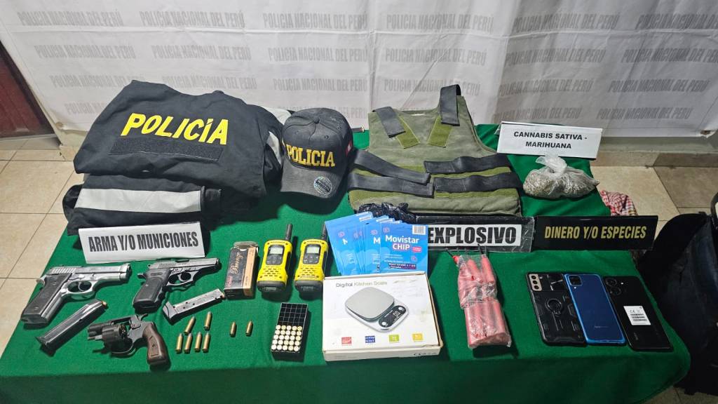 Durante la intervención fueron detenidos en flagrancia Yeison Juan Osorio Velásquez (35) y Yesica Nonato Ramírez (33), quienes son investigados por la presunta comisión de los delitos contra la salud pública – Tráfico Ilícito de Drogas (en la modalidad de macroproducción o microcomercialización), así como por la tenencia ilegal de armas de fuego, municiones y explosivos.