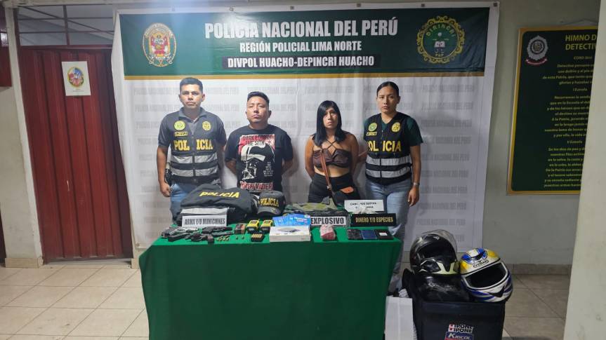 Durante la intervención fueron detenidos en flagrancia Yeison Juan Osorio Velásquez (35) y Yesica Nonato Ramírez (33), quienes son investigados por la presunta comisión de los delitos contra la salud pública – Tráfico Ilícito de Drogas (en la modalidad de macroproducción o microcomercialización), así como por la tenencia ilegal de armas de fuego, municiones y explosivos.
