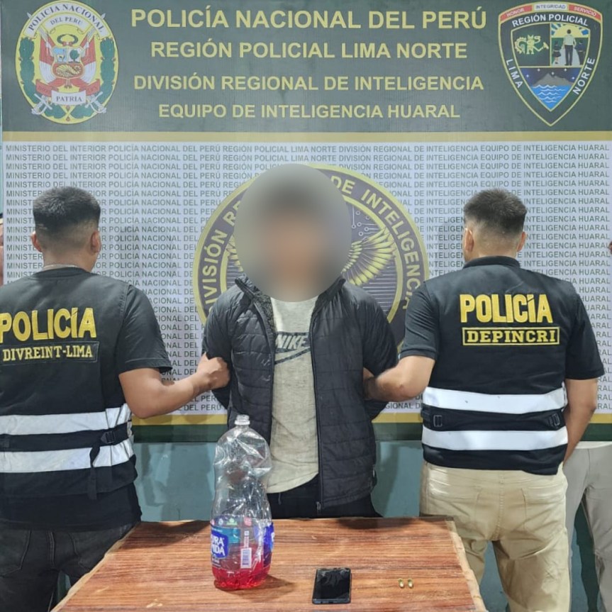 Durante la intervención, se logró la retención en flagrancia del menor L. F. A. P. (15), alias «Perico». En el registro personal se le halló un equipo celular; asimismo, en la escena se encontró un sobre con un mensaje extorsivo parcialmente quemado, junto a dos municiones calibre 9 mm y una botella con combustible utilizada para amedrentar a la víctima.