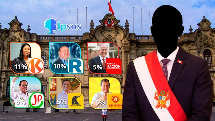 Los sigue un pelotón de cuatro aspirantes con 5%: Alfonso López-Chau de Ahora Nación, Roberto Sánchez de Juntos por el Perú; Carlos Álvarez de País para Todos y Jorge Nieto del Partido del Buen Gobierno.