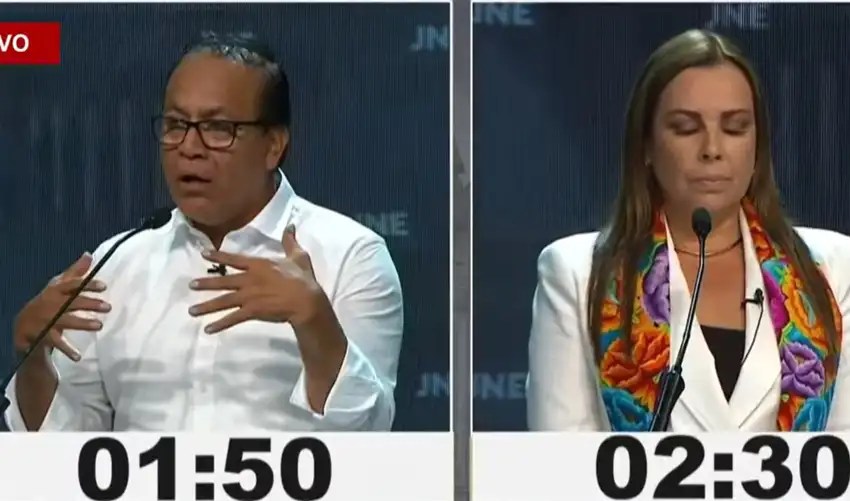 Antes de la intervención de Sánchez, Fiorella Molinelli le increpó al candidato su respaldo al expresidente Pedro Castillo y le recordó que, tras el fallido golpe de Estado del 7 de diciembre del 2022, Dina Boluarte asumió la Presidencia.