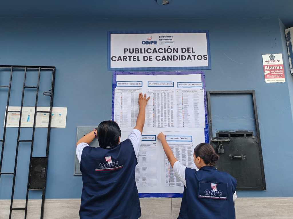 De acuerdo con los artículos 169 y 209 de la Ley Orgánica de Elecciones, la Oficina Nacional de Procesos Electorales debe difundir el cartel de candidatos en lugares públicos con una anticipación de 15 días previos a la fecha del proceso electoral, programado para el 12 de abril.